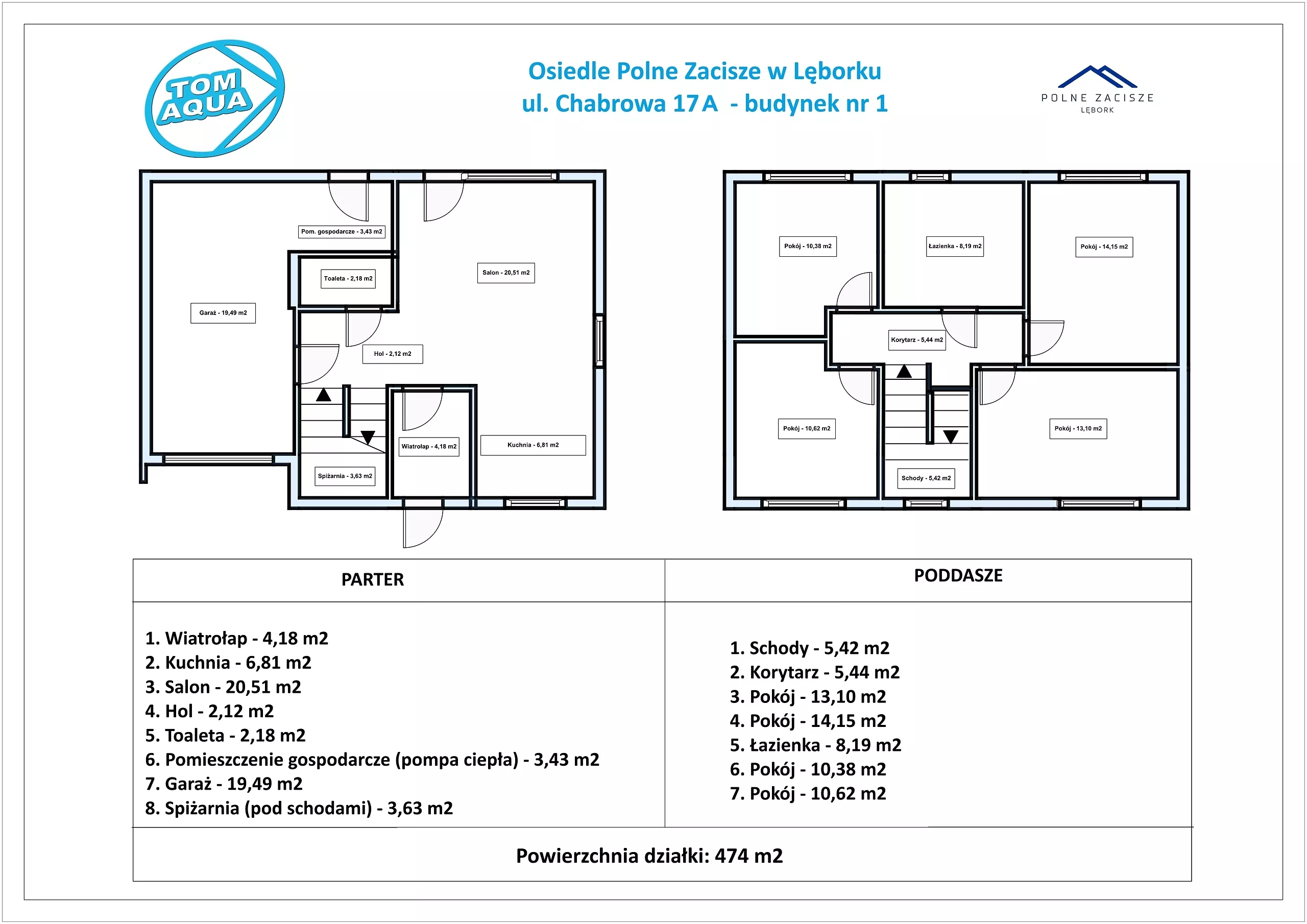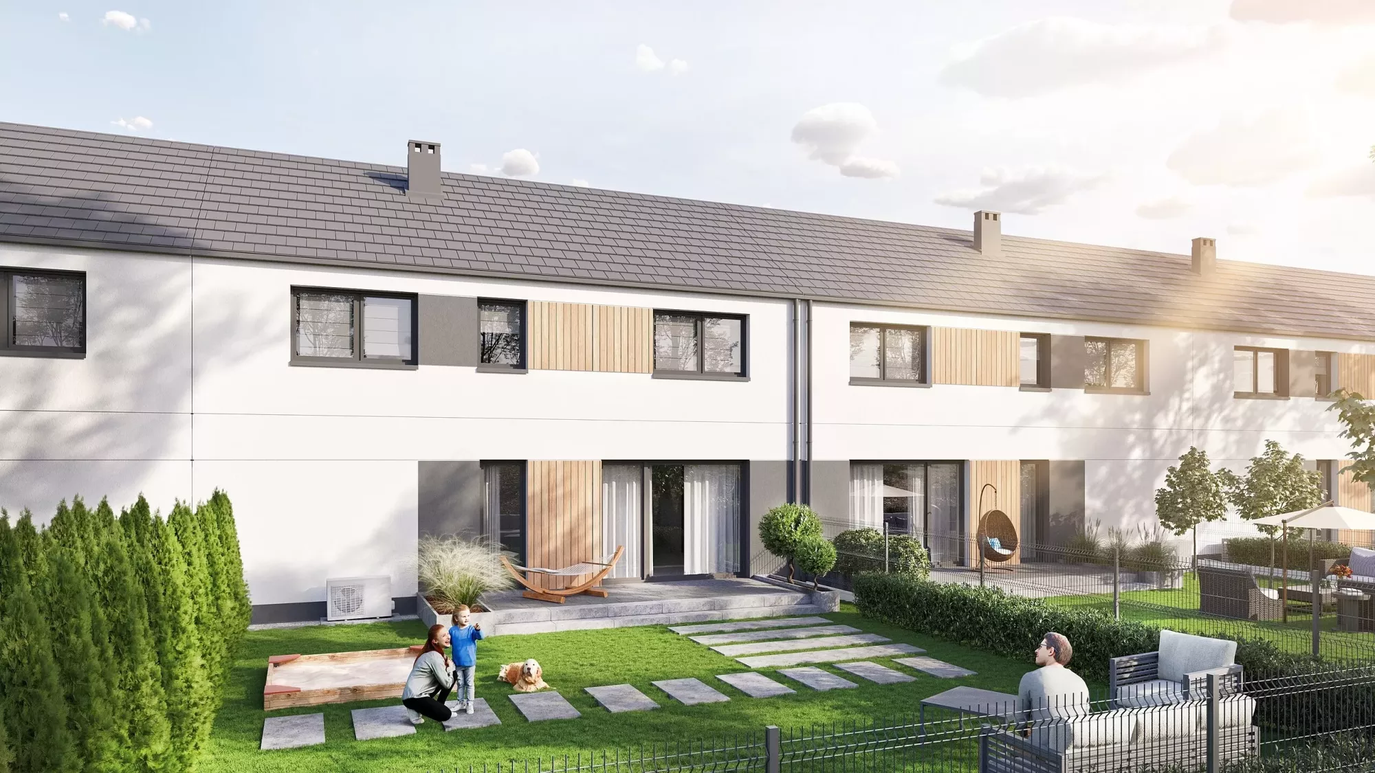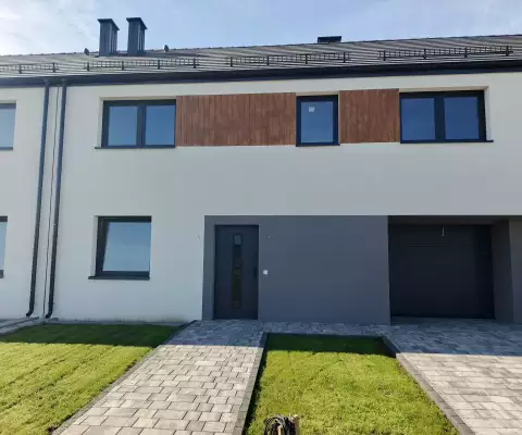 - Każdy z domów posiada powierzchnię użytkową 129,65 m2 oraz działkę o powierzchni od 300 do 470 m2.